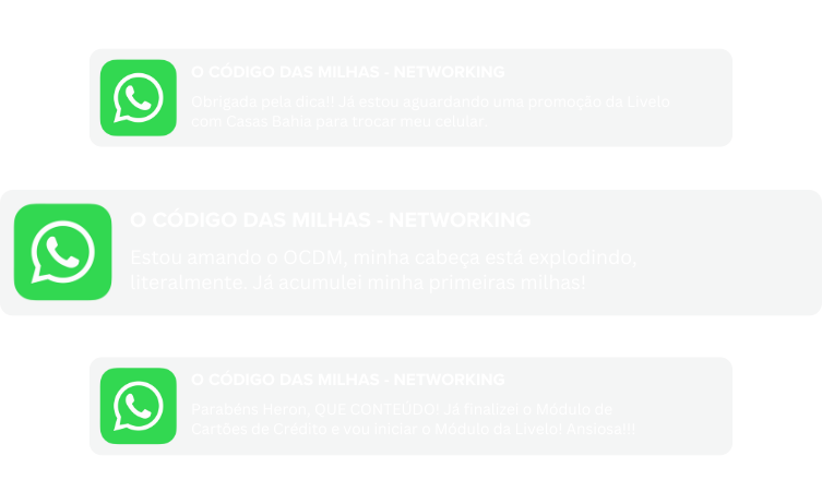 Ainda está pensando se O CÓDIGO DAS MILHAS é para você? Chama a nossa equipe no WhatsApp que vamos tirar todas as suas dúvidas.